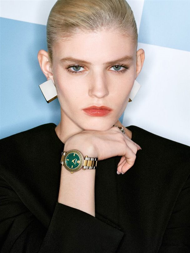 Versace saatleri, model Camille Chifflot’nun yer aldığı yeni İlkbahar-Yaz 2024 kampanyasında parlıyor. Kampanyada iki çarpıcı saat sergileniyor: La Greca ve Dominus Lady.