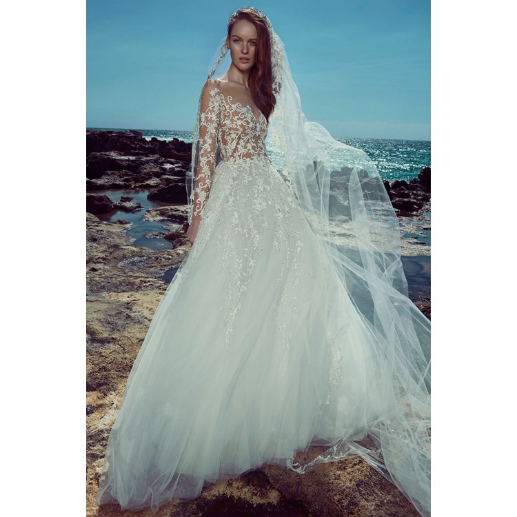 Koleksiyonda özellikle uzun kollu gelinliklere sıkça rastlanıyor.