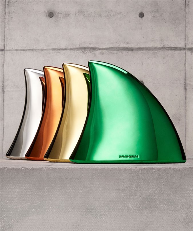 Londra merkezli tasarımcı David Koma, kendi adını taşıyan markası için tasarladığı heykelsi, metal formdaki yeni el çantasıyla gündemde. Apex çanta olarak adlandırılan bu yeni model, köpekbalığı yüzgeci (veya gül dikeni de olabilir) şeklinde. Çanta; altın, gümüş, turuncu ve yeşilden oluşan dört metalik renk tonuyla sunuluyor.