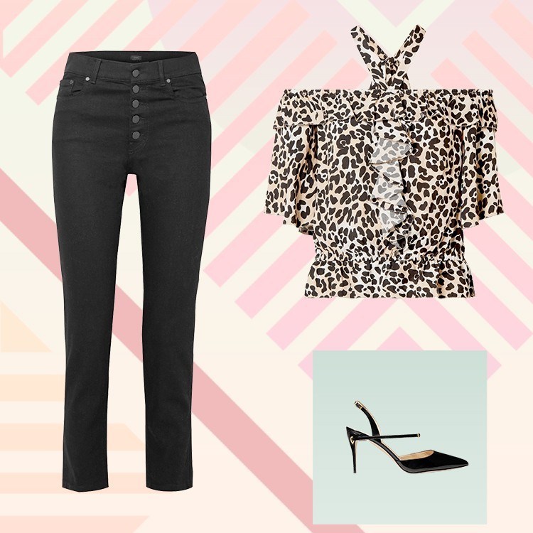 Leopar dar kot pantolonunuz ile siyah gömleğinizi topuklu bir ayakkabıyla kombinleyerek şık bir görünüm oluşturabilirsiniz.