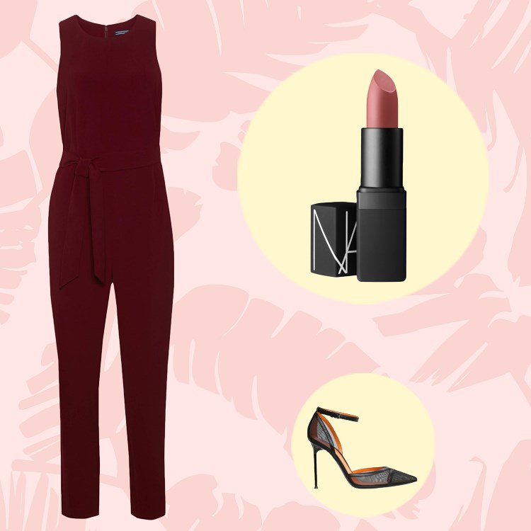 Bordo ve ince bir kemeri olan kolsuz tulum ile giyeceğiniz ince bilekli stiletto ile şıklığı yakalayıp dilediğiniz hery ere gidebilirsiniz.