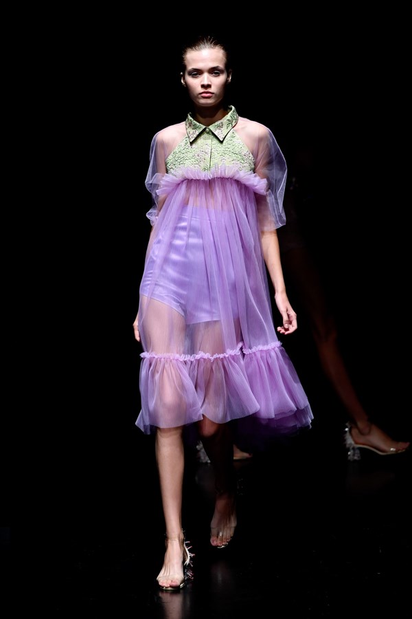 "Fake is The New Black” sloganının sıkça vurgulandığı baskılarla detaylandırılan tasarımlarda nefes alabilen koton kumaşlar kullanılırken, kalıplarda 2000’lerin uçurum göğüs dekolteleri, ekstra dar zincir ve piercing detaylı elbiseler, etekler ve ceketlerin yanı sıra; ultra bol, cinsiyetsiz kalıplar blok renklerle harmanlanarak grafik silüetler ortaya çıkartıyor.