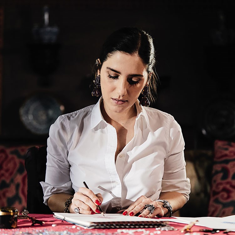 Tasarımcının, İstanbul’un en eski bölgesi Suriçi’ndeki tarihi atölyesinde el emeğiyle üretilen tüm mücevherleri, yerel zanaatkarların usta dokunuşlarıyla kendine has bir kişilik ve ruh ediniyor. Bronz döküm tabanı 24 ayar altınla kaplanan mücevher şişe tasarımı da yüzeyine özenli bir biçimde tek tek elle yerleştirilmiş yaklaşık 6.500 adet değerli taşıyla markanın geleneksel yöntemlere bağlılığını bir kez daha, müthiş bir estetikle görünür kılıyor.