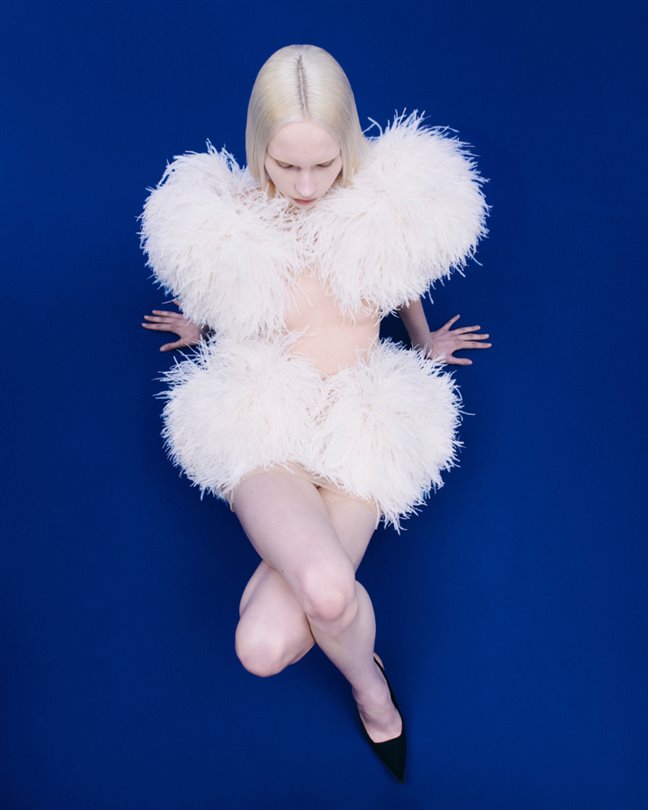 Son tema, göz alıcı süslemelere odaklanıyor. Işıltılı kristal detaylar, vücuda oturan elbiselerin üzerinde yükseliyor, şeffaf tül parçalar küçük tüy kümeleriyle kaplanıyor ve dar kesimli tasarımlar, pul şeklinde ince deri katmanlarıyla tamamlanıyor.
