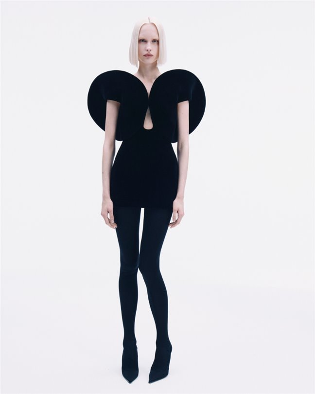 David Koma, kış 2025 koleksiyonunda sade ve heykelsi şekillere odaklanıyor. Kadife kumaştan üretilen elbiseler vücuda yumuşak bir şekilde otururken, uzun siyah elbiseler sütun gibi düz bir şekilde aşağı doğru iniyor ve keskin, modern kesimlerle açılıyor. Büyük fiyonklar tafta tasarımlara dramatik bir hava katarken, kavisli detaylar parlak mavi parçalarda yeni şekiller yaratıyor.