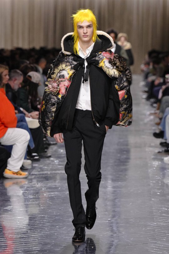 Defilede mankenlerin taktığı ve Guido Palau tarafından yaratılan çılgın sarı peruklar ise anime kültürüne bir gönderme niteliği taşıyordu.