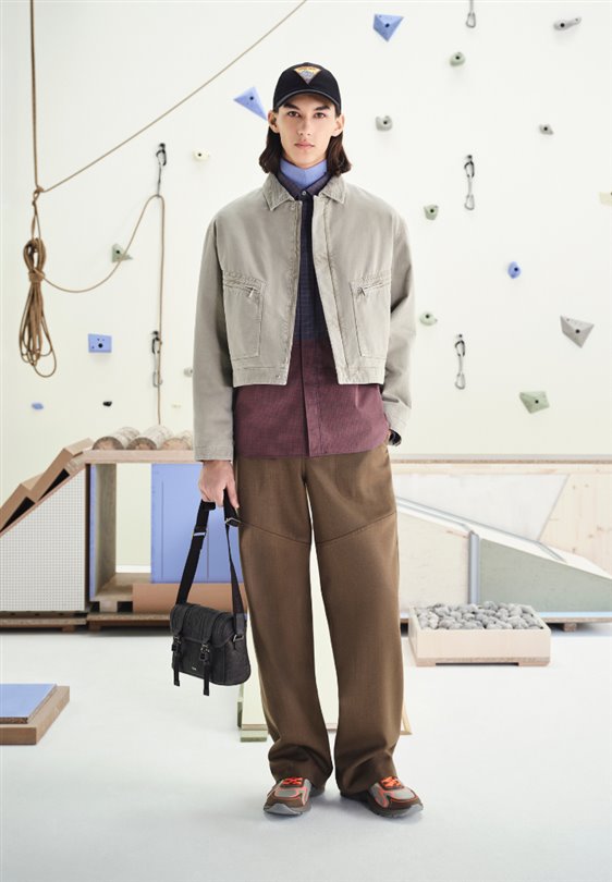 Açık hava kültürü ile lüksün kusursuz standartlarının birleşimi, formal ve günlük tarz arasındaki sınırları belirsizleştiren görünümlerle sunuluyor. Blazer ceketler ve balıkçı yaka kazaklar, kargo pantolonlarla ya da kayak pantolonlarıyla bir araya geliyor.