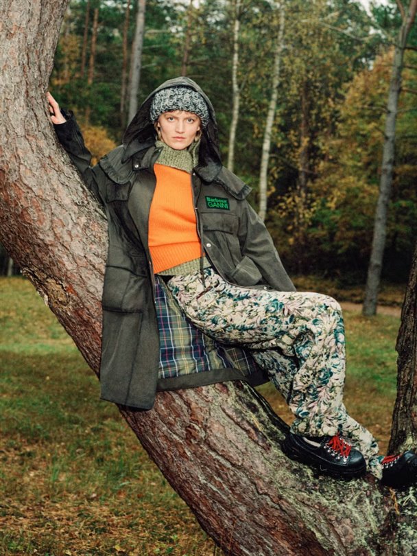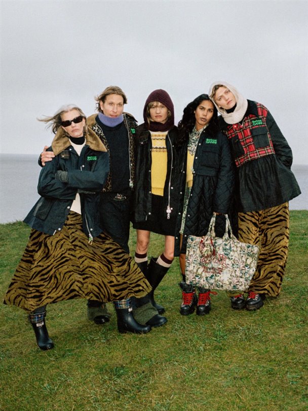 Ganni x Barbour, Ganni.com ve Barbour.com'da ve mağazalarda satışta.