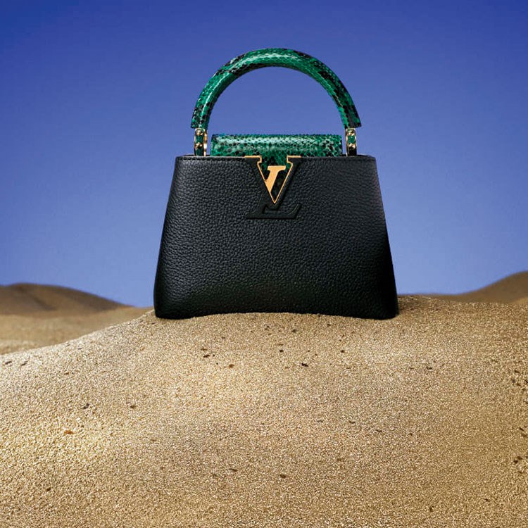 Ramazan 2022 Çanta kapsül koleksiyonu ise Louis Vuitton’un en ikonik kreasyonlarından beşini içeriyor: Petite Malle, Alma BB ve Dauphine Mini; İlkbahar-Yaz 2022 Monogram Dantel animasyonunu rugan kaplamayla yeniden yorumluyor. Coussin PM koyu tek renkli olarak sunulurken, Capucines Mini zümrüt piton detaylarıyla ön plana çıkıyor. Koleksiyon, çeşitli topuk yüksekliklerinde ve zümrüt yeşili renkleriayakkabı tasarımları ile tamamlanıyor.