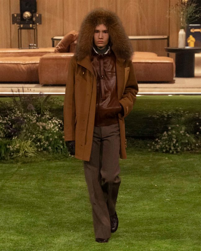 Pharrell Williams tarafından Not A Hotel mimarlık firmasıyla iş birliği içinde, geleceğin ev yaşamı için bir model olarak tasarlanan prefabrik bir evin içinde sunulan Louis Vuitton Erkek Sonbahar-Kış 2026 koleksiyonu, Louis Vuitton'un ‘zamansız tekstiller’ olarak tanımladığı unsurlar etrafında yapılandırılmış.