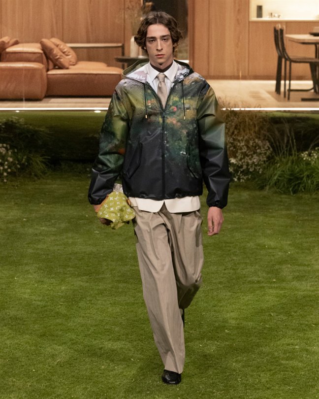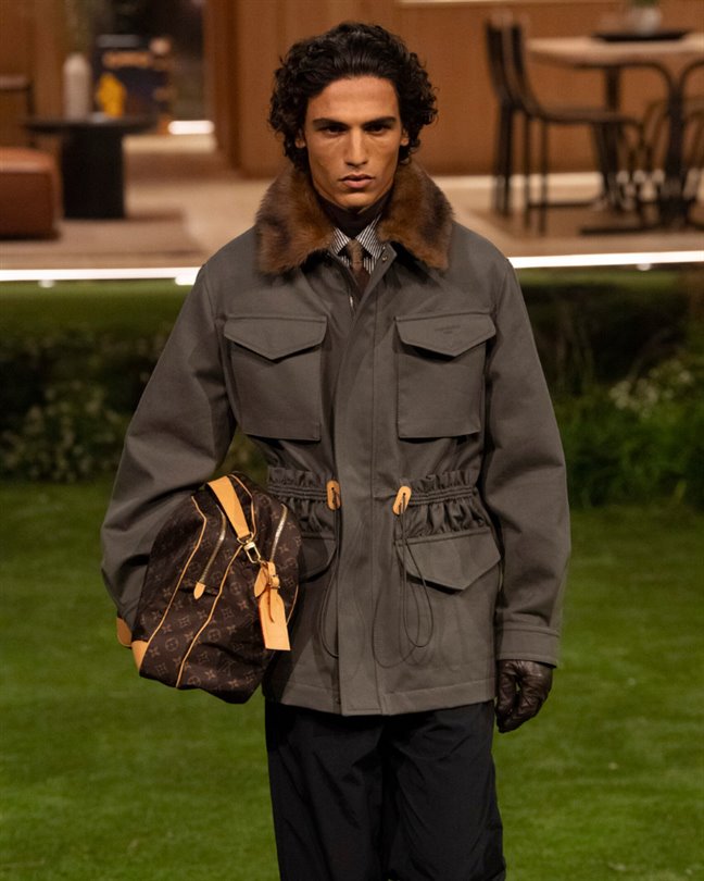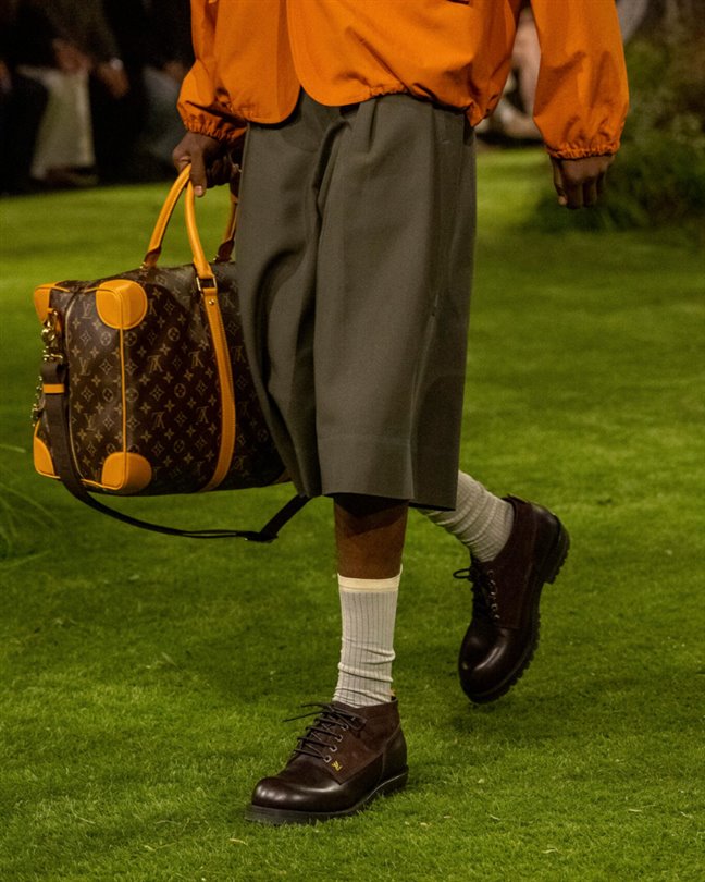Çantalar, yağmur veya patina ile Monogram desenlerini ortaya çıkaran malzemelerle hava koşullarına, dokunmaya ve zamana tepki veriyor. Timsah derisi Speedy P9'lardan hareketli retro-fütüristik objelere kadar en istisnai parçalar bile işçiliği ve dönüşümü vurguluyor.
