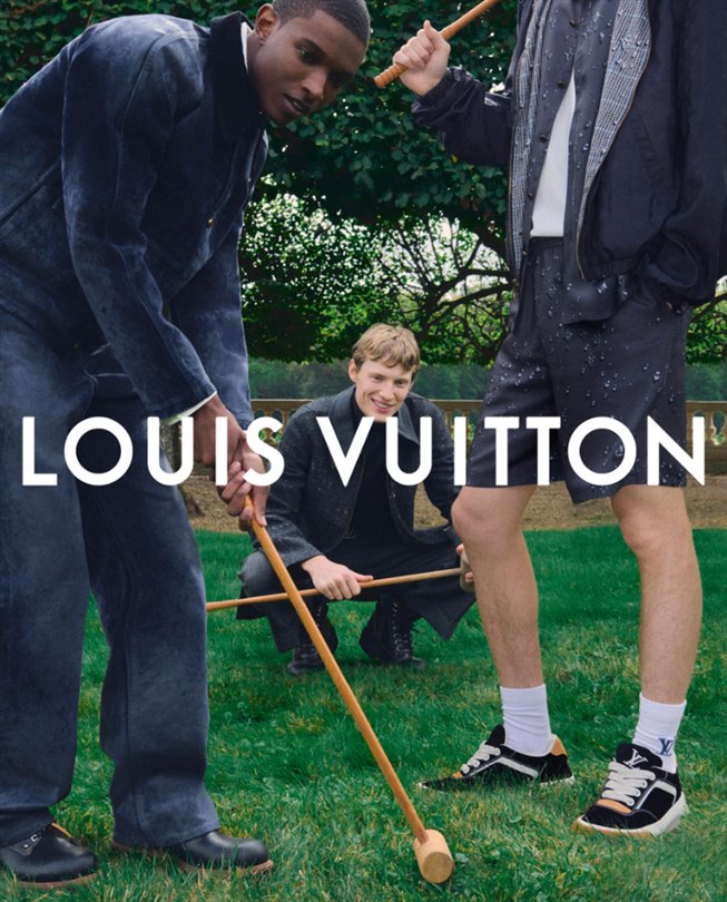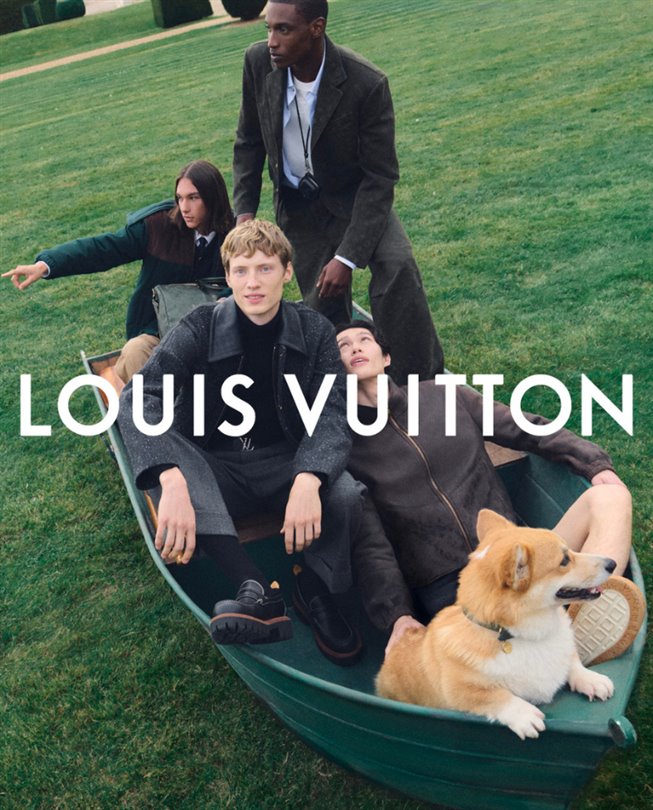Koleksiyonda; şişme montlara dönüştürülmüş tüvitler, Monogram Surplus motifli kapitone yelekler ve markanın seyahat mirasından esinlenen ceketler yer alıyor. Orman yeşili, soluk altın ve kış meyvesi tonları, kostüme bağlı hissettirmeden yıpranmış kırsal duyarlılığı yansıtıyor.