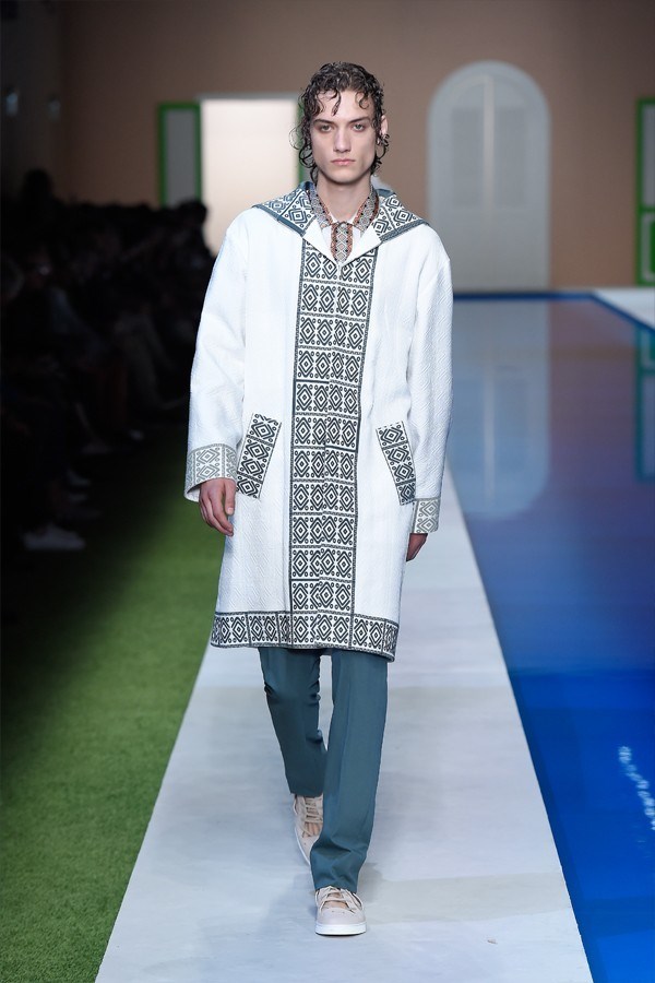 Söz konusu sade zevkler ve doğa olunca renkler de huzur veren sakin tonlardan oluyor. Yeşil ve mavi tonları koleksiyonda öne çıkan ana renkler. Paltolardan parkalara, gömlek tipi ceketlerden şortlara kadar pek çok parçada rahatlığı ve detaylardaki şıklığı görebiliyorsunuz. Çizgi deseni de karşımıza çıkan ve yoğun kullanılmış detaylardan… Kalın çizgiler kullanılmasına rağmen gözü yormayan ve fazla dikkat çekici olmayan bir şekilde yer verilmiş. Bu yeni yaratıcı ve özgür Fendi erkeğini siz nasıl buldunuz?