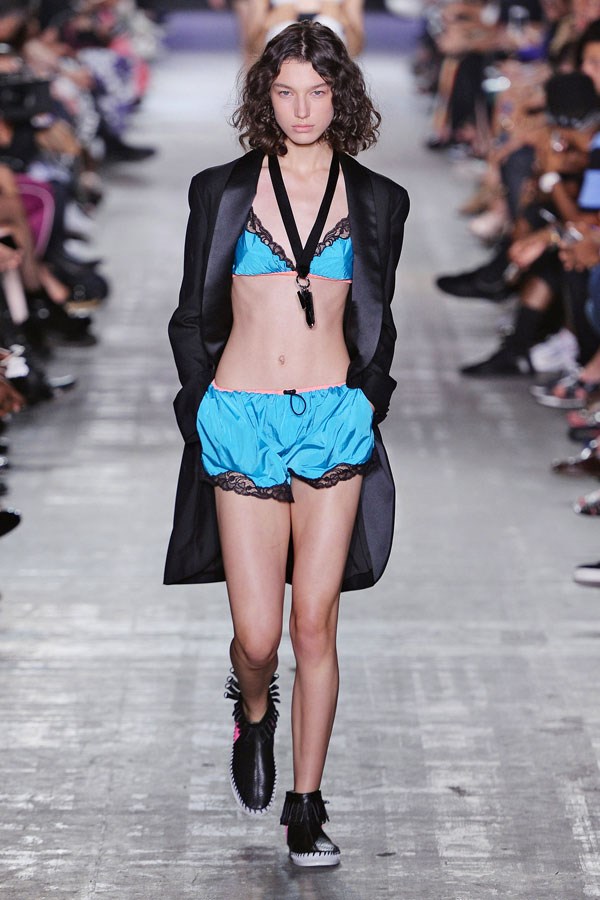 New York Moda Haftası denince akla gelen ilk isimlerden olan Alexander Wang bu sezon dolabımızın en basit ve temel parçalarını yeniden inşa ediyor ve ufak değişiklikler ile sokağa döküyor. Belki bir pijama takımının şortunu üstüne blazer ceket giyerek kullanmak şu an için kulağa garip gelse de gelecek sezon bu trendden bir hayli bahsedeceğiz gibi duruyor.