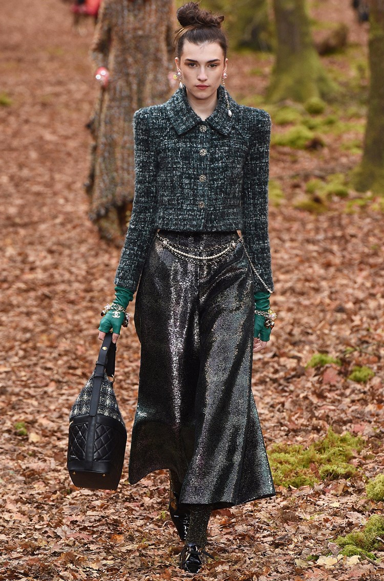 Ünlü moda evi Chanel, Paris Moda Haftası kapsamında gerçekleştirdiği defile için bu sefer Grand Palais’yı bir ormana çevirdi. Bu koleksiyonda defilenin dekorasyonundan görüldüğü olduğu gibi bir sonbahar teması hakim. Toprak tonları ve turuncular Chanel’in Sonbahar/Kış 2018 koleksiyonunda dikkat çekiyor. Chanel’in klasik tüvit detayları antrasit gibi daha koyu renklerle ön planda. Koleksiyonda daha düz ve net siluetler dikkat çekiyor. Karl Lagerfeld, bu sezon daha güçlü ve maskülen kadınları anlatıyor.