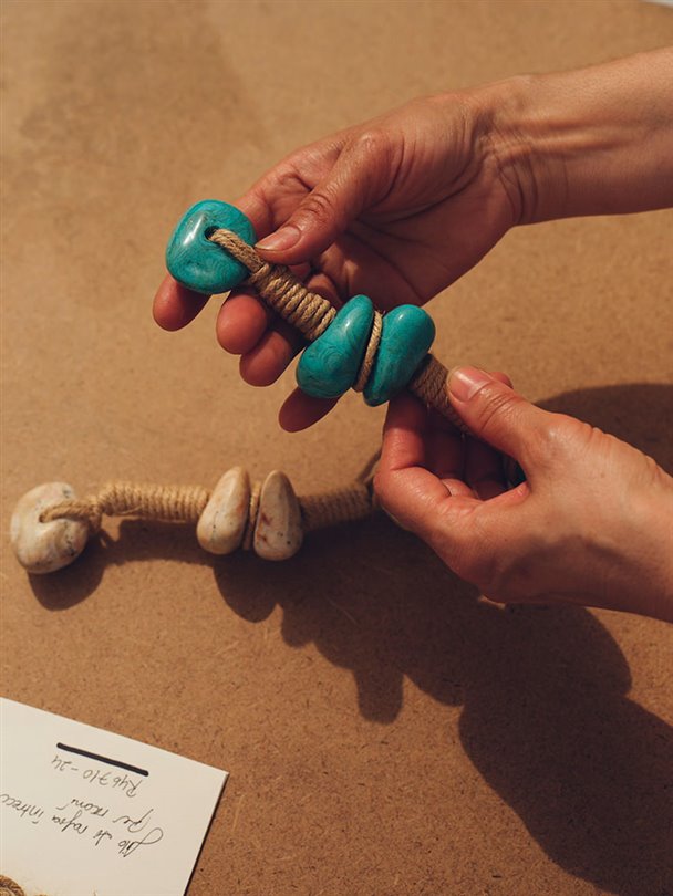 Serena Uziyel’in, ‘Born From Land and the Sea: Delphine & Petra’ adını verdiği, kanvas ve ham rafya ipliklerin büyük bir ustalıkla işlendiği yeni koleksiyonunda modeller, Güney'in ışıltılı doğal taşlarının yer aldığı değerli yaz hatıralarını anımsatıyor. Petra ve Delphine ailelerinde kullanılan renkler ve materyaller, Akdeniz manzaralarını ve dokularını yansıtıyor. Mavi ve yeşilin uyumu, yemyeşil çam ağaçlarından oluşan inişli çıkışlı tepeler, turkuaz suların ve keskin kayalık uçurumların geniş uzantıları bu yeni koleksiyonda adeta hayat buluyor.