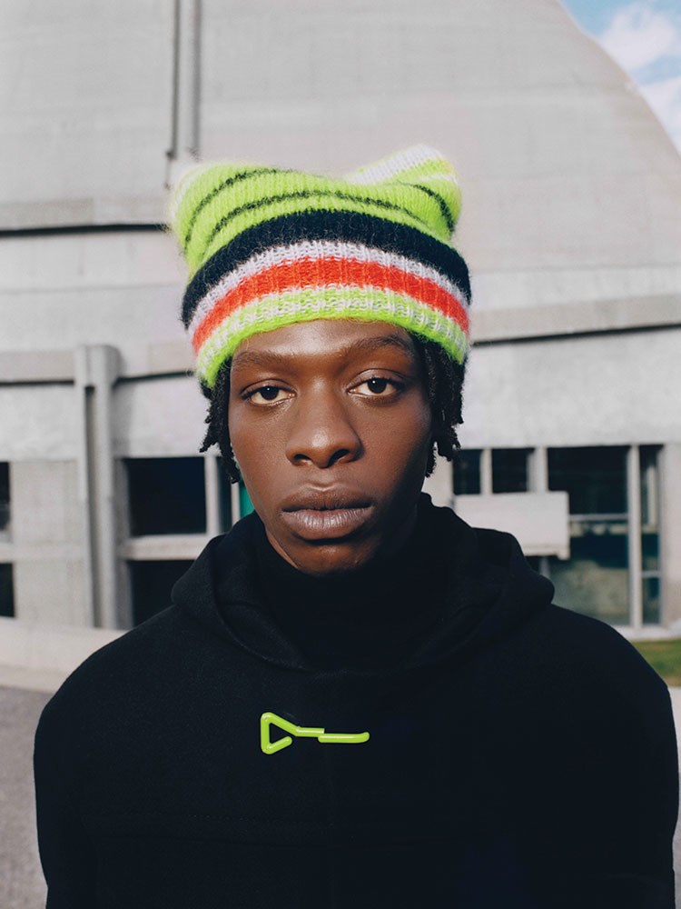Virgil Abloh tarafından yaratılan imza niteliğindeki kopçaya sahip çizgili mavi takım elbisede olduğu gibi, yetişkin kodlar rahat kesimler ve hafif materyaller ile yorumlanıyor. Çizgiler siyah beyzbol ceket ve pantolonun uyumundan ödün vermiyor. Benzer şekilde bu yeni takım elbise fikriyle, siyah denim ceket ve pantolonun mavi kontrast cep ve bağcıklarla bir araya geldiği yeni bir görünüm sunuyor. Dağ silsilesi olarak adlandırılan zikzak deseninden ismini alan Karakoram; dokuma iğnesi, kabartma ve ton jakarlarında, aynı zamanda saten bomber ceketlerde kendini gösteriyor.