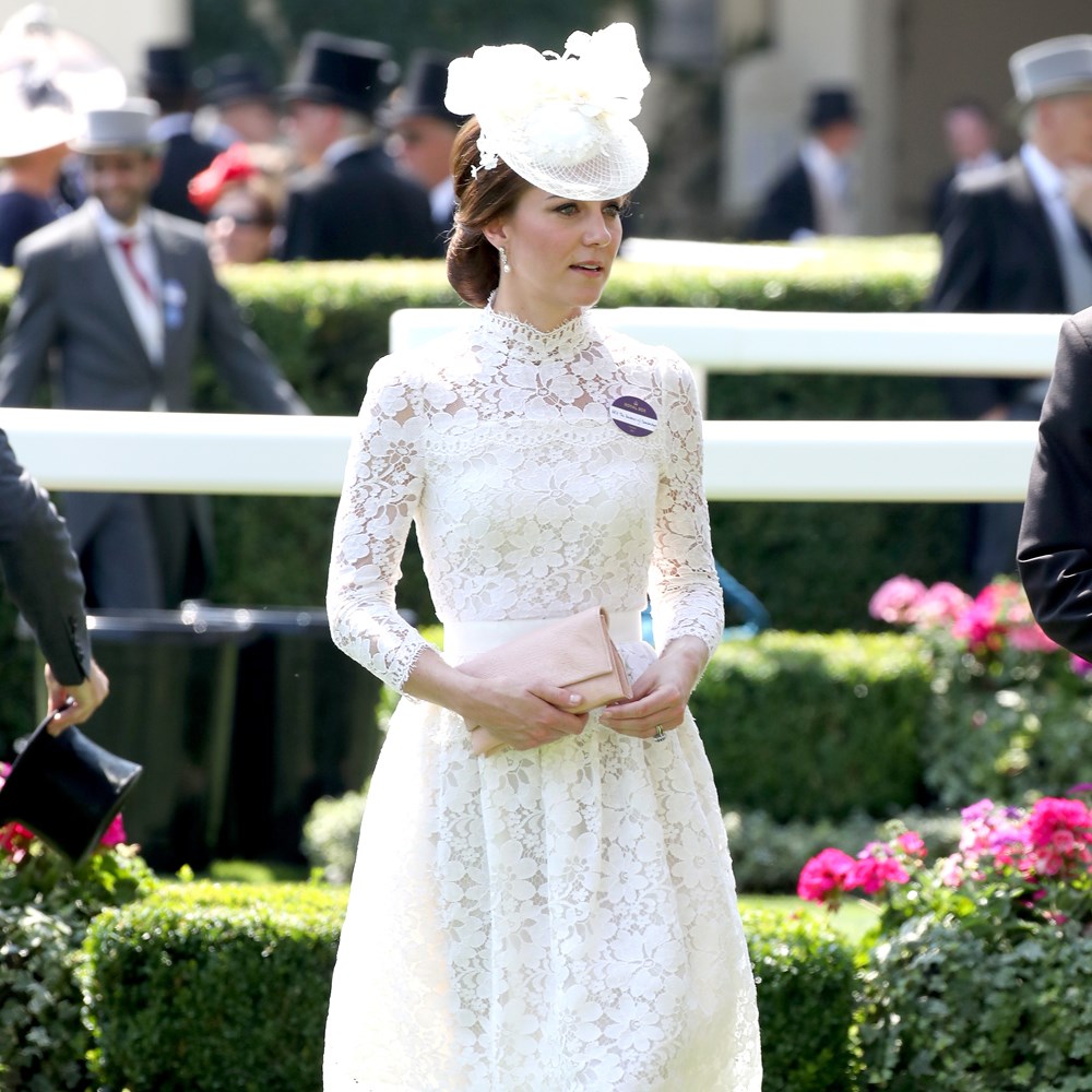 Dantel işlemeli takımı ve saçındaki mini şapkası ile her daim klasik ve zarif olan Kate Middleton'ın tercihi Alexander McQueen.