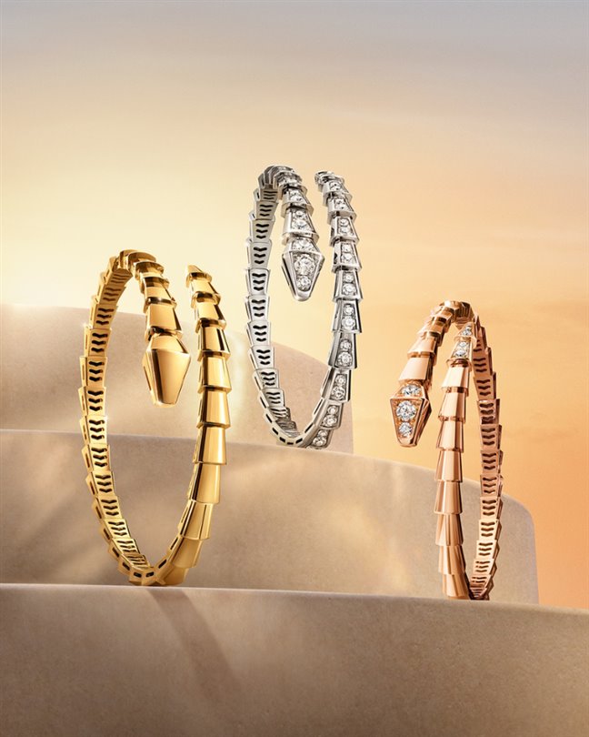 Bulgari'nin sembolik değerli metali olan sarı altından üretilen bu tasarımlar, modern ve güneşten ilham alan bir sıcaklık yayıyor.
