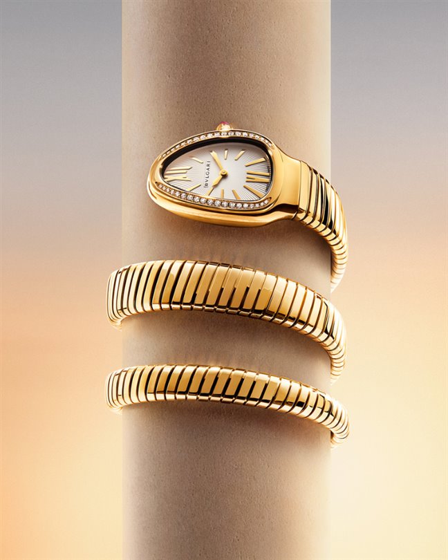 Fotoğrafçı Chris Colls tarafından çekilen kampanya, Serpenti'yi prizmatik yansımalar ve parlak ışıklarla dolu bir dünyaya daldırıyor. Her görüntü başkalaşımı, kadın gücünü ve yılan sembolünün ebedi yeniden doğuşunu çağrıştırıyor.