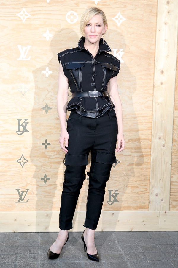 Cate Blanchett gecenin en tarz isimlerinden... Hacimli kolsuz ceketini siyah deri bir kemerle kullanan 47 yaşındaki oyuncu yine farklı kesim bir pantolon giymiş. Blanchett kombinine feminenliği siyah stiletto'ları ile katmış.