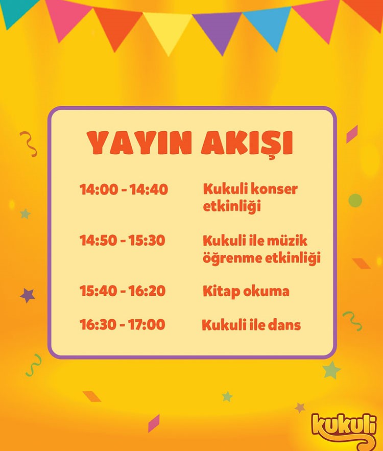 Kukuli 23 Nisan’da sosyal medya mecralarından canlı yayın ile 23 Nisan şenliği etkinliği düzenliyor. İki saatlik etkinlik eğlenceli ve eğitici bir program içeriyor: Kukuli şarkılarının söylendiği konser, evde nasıl müzik yapılır?, Kitap okuma etkinliği ve harekete davet eden Kukuli şarkıları eşliğinde dans etkinliği. Sabri Ülker Vakfı’nın ana sponsorluğunda gerçekleşecek olan şenlikte Civil Mağazacılığın katkıları ile tam 99 çocuğa sürpriz hediyeler dağıtılacak.