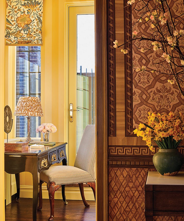 Shonda Rhimes, bu renkli evini tasarlaması için, daha önce Los Angeles’taki evinde de birlikte çalıştığı eski Beyaz Saray iç mimarı Michael S. Smith ile anlaşmış. Enerjik ama geleneksel dekorun hakim olduğu dairede Çin tarzı duvar kağıtları, çok sayıda yaldızlı mobilya ve aksesuar ile çağdaş ve antika parçalar bir arada kullanılmış.