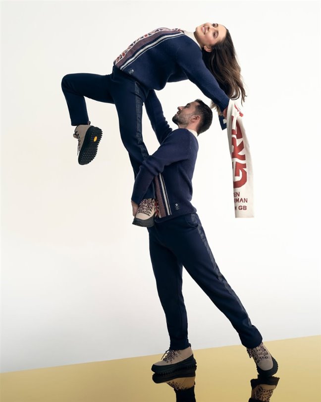 Erkek giyim markası Ben Sherman tarafından tasarlanan İngiliz takımının koleksiyonu, İngiliz beyefendisinin titizliğini ve kış Alplerinin romantik estetiğini yansıtıyor. Koleksiyonda, zarif bir köpek dişi desenli uzun yün palto, incelikle parıldayan ekose astarlarla eşleştirilerek, sade bir katmanlama hissi sergiliyor. Bunun ötesinde, en çok konuşulan iş birliği şüphesiz Olimpiyat dalış altın madalyası sahibi Tom Daley tarafından yaratılan örgü aksesuar serisi. Sahada stres atmak için örgü örmeyi kullanan Daley, el işçiliğine olan tutkusunu takım arkadaşları için sıcaklığa dönüştürerek, kabarık kalın örgü atkılar ve bereler üretti. Bunlar sadece sıcaklığın görsel çekiciliğini önemli ölçüde artırmakla kalmıyor, aynı zamanda soğuk resmi üniformalara bir el işçiliği dokunuşu ve ev hissi de katıyor.