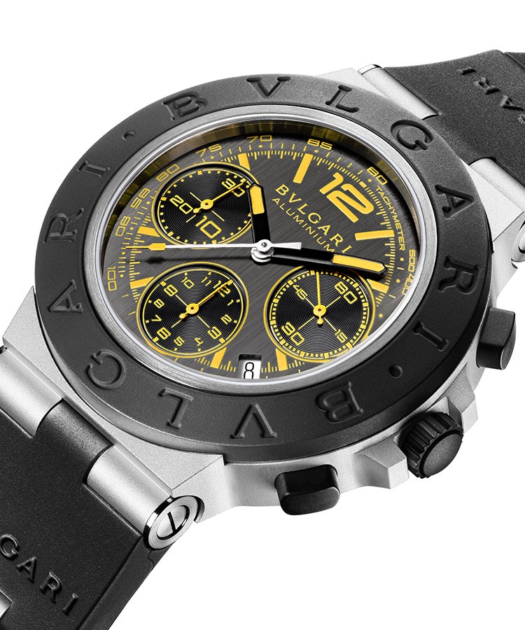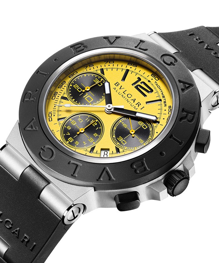 BULGARI Aluminium x Gran Turismo Special Edition saatin sarı kadranda siyah göstergeli (500 adet) ve antrasit kadranda sarı imli (1200 adet) olmak üzere iki versiyonu sunuluyor.