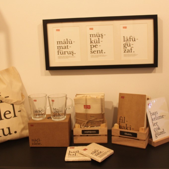 Kelimelerin yazılı olduğu posterler, bardaklar, çantalar ve bardak altlıkları gibi farklı tasarımlar mevcut. Böylelikle kelimeler dilimizde ve kalemimizde olduğu gibi artık içtiğimiz çay bardaklarından, taktığımız çantalara kadar taşınarak hayatımıza dahil oluyorlar.