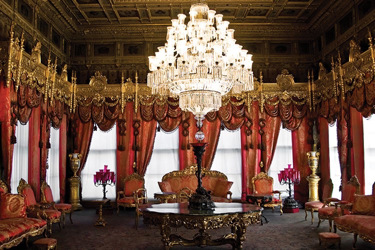 Osmanlı’nın ilk modern sarayı olan Dolmabahçe Sarayı, Sultan Abdülmecid’in isteği üzerine mimar Balyan kardeşlere yaptırıldı. 1843’te başlayan inşaat, 1853’te tamamlansa da o tarihte devam eden Kırım Savaşı sebebiyle ancak 3 yıl sonra açılabildi. Osmanlı mimari kültürüne uygun ama Avrupa stilinde inşa edilen yapıda, pek çok teknoloji de ilk kez kullanıldı. Süslemelerinde hiçbir masraftan kaçınılmayan sarayın her odası, hatta her köşesi ayrı göz alıcı. 2.000 metrekareyi aşan alanı, yüksekliği 36 metreyi bulan kubbesi ve her detayı ayrı bir işçilikle bezenmiş olan Muayede Salonu hâlâ yapıldığı dönemdeki göz alıcılığını sürdürüyor. Topkapı Sarayı’ndan getirilen altın taht ve 4,5 tonluk kristal avize, salonu gezen herkesi büyülüyor.