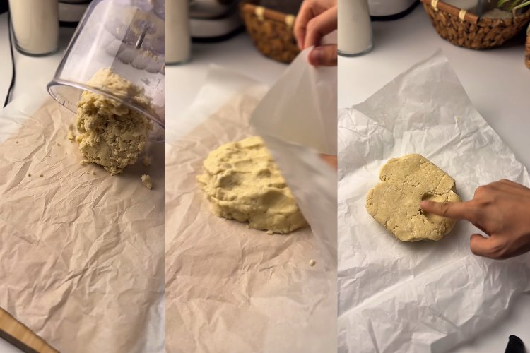 Robotumuzda tuz ve unu 1-2 tur çevirdikten sonra tereyağımızı atıyoruz. Aralıklı olarak çalıştırıyoruz. Kum gibi olmalı. Son olarak da yumurtamızı ve az az soğuk suyu ekleyip 1-2 dakika tekrar çeviriyoruz.