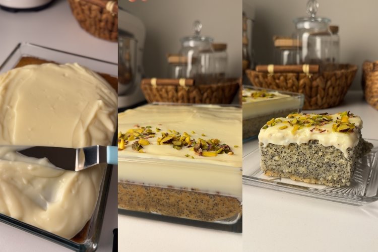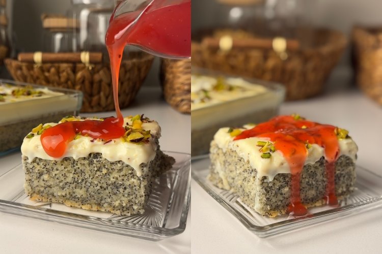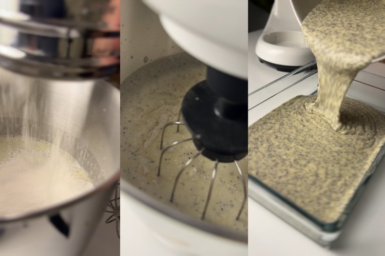 Karıştırmaya devam ederken irmik ve haşhaşı ekliyoruz.
