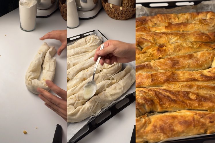 Alt üst 190°C ısınmış fırında kızarana kadar pişiriyoruz. (Yaklaşık 45 dakika)